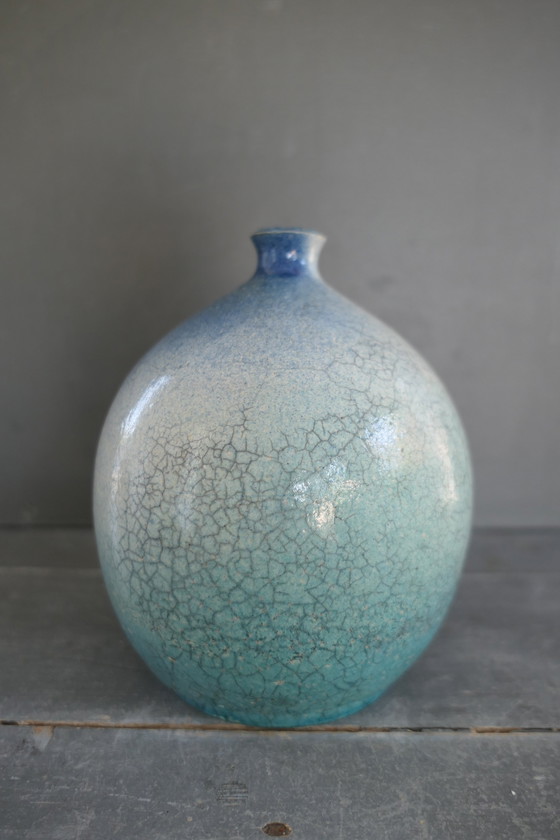 Vase vintage Fernand Everaert Belgique, hauteur 19 cm, diamètre 15.5 cm. Marqué FE. Sur le col à l'intérieur du haut, il semble y avoir une petite irrégularité sur le bord, voir photo 9 ci-dessus. Elle est à peine perceptible.