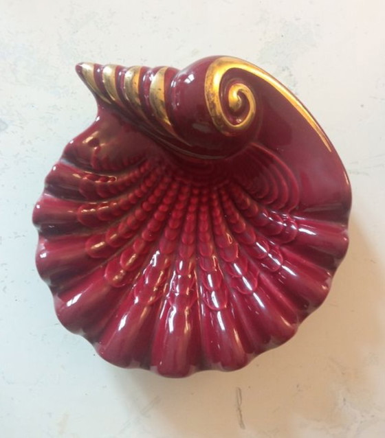 Vide poche en forme de coquillage bordeaux et doré de Verceram.