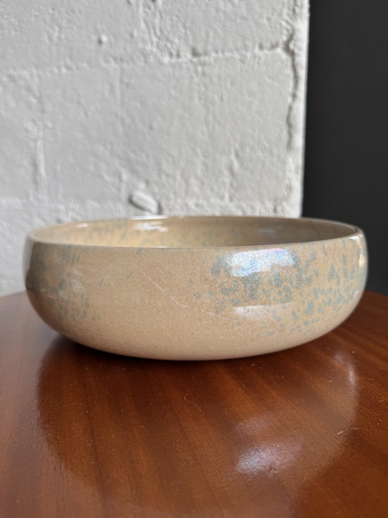 Joli vide poche en faïence de Charolles, France, des années 80 fond beige légèrement irisé et tacheté de gris perle; très bon état général