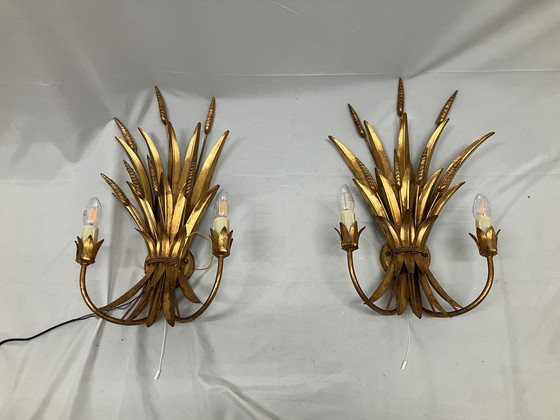 Vintage set van 2 stuks Hans Kögl Wheat Sheaf korenaar wandlampen Hollywood Regency, rococo, barok stijl.