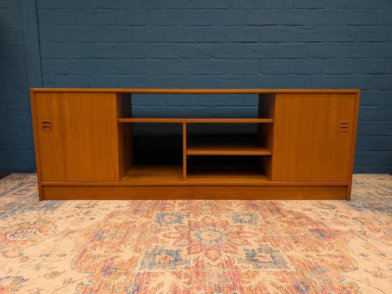 Fraai vintage lowboard uit Denemarken. Deze fraaie kast is ideaal voor al je apparatuur, zoals je platenspeler en televisie.