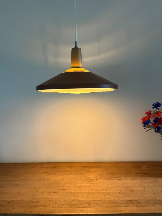 Mots-clés : Lyfa Fyns Plan, suspension design danois, luminaire milieu de siècle, design scandinave, suspension vintage, lampe ocre, lampe brun rouille, luminaire d'ambiance, suspension de salon, luminaire de salle à manger, design années 60.