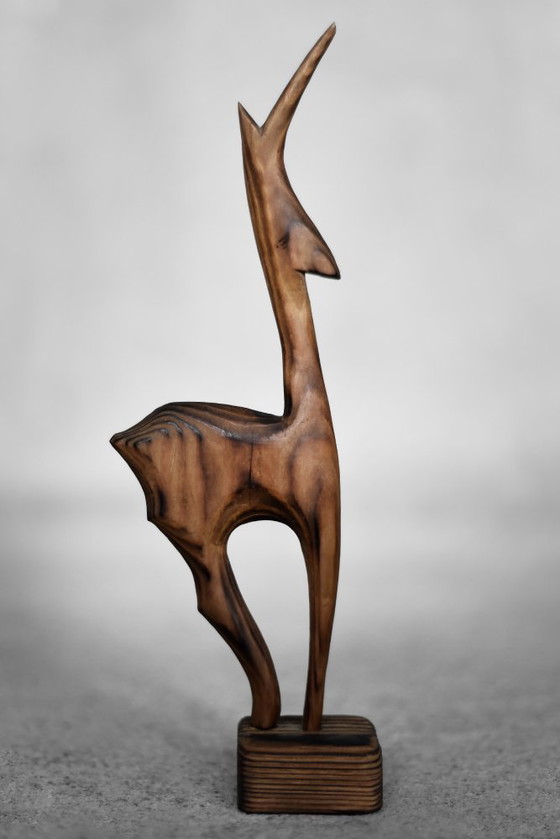 Vintage Mid-Century Danish Modern Dark Wood Sculpture Gazelle Figurine, 1960s