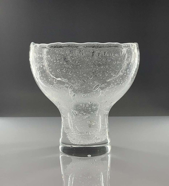 Nous proposons à la vente un vase/bol exceptionnel de l'ancienne Tchécoslovaquie en verre à bulles élégant, Bubbleglass Design avec des inclusions d'air typiques. Son aspect rappelle un peu les œuvres de Murano. La pièce porte en outre une étiquette originale.