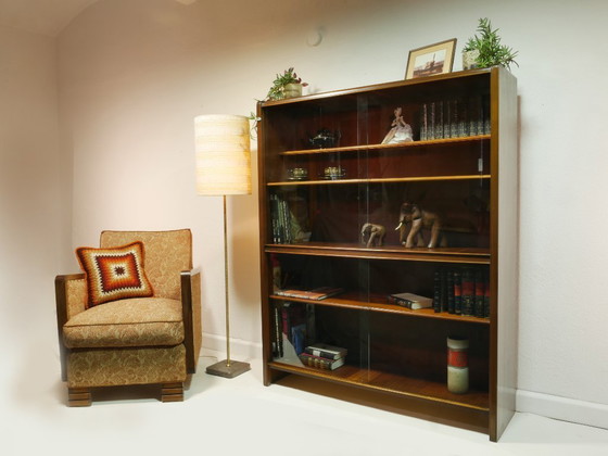 Vintage Vitrine 60er Jahre, Bücherschrank mit Glasschiebetüren, Mid Century Wohnzimmerschrank aus Buche & Eiche, Germany