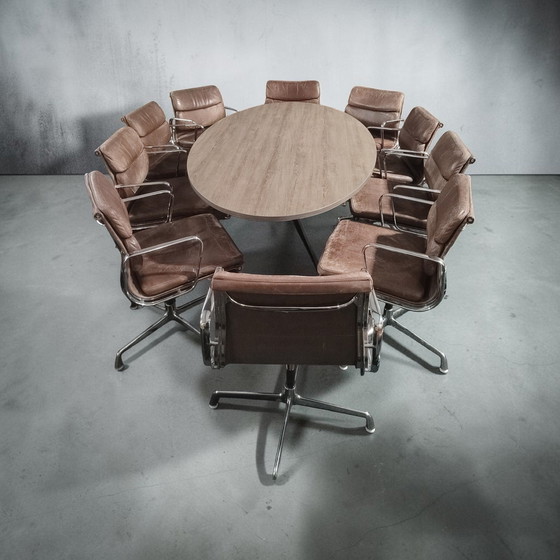 Un classique du design signé Vitra (Charles & Ray Eames). Ce luxueux fauteuil EA 208 est revêtu d'un cuir marron de haute qualité et offre un confort d'assise optimal grâce à ses coussins Soft Pad emblématiques.