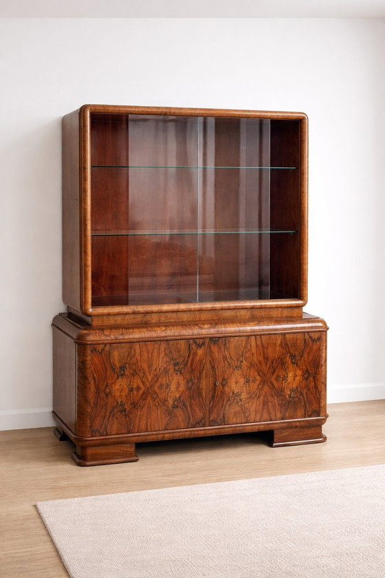 Vitrine/buffet Art Déco – Pays-Bas, vers 1930 – placage en loupe de noyer