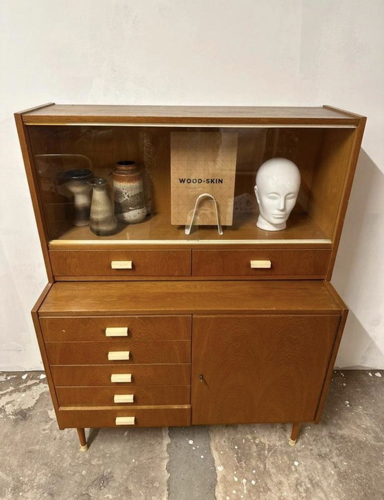 Magnifique armoire murale vintage de Slovaquie, conçue par Jiri Jiroutek dans les années 1960. Toujours en bon état vintage et construite en deux parties séparées, ce qui la rend facile à transporter et à assembler.