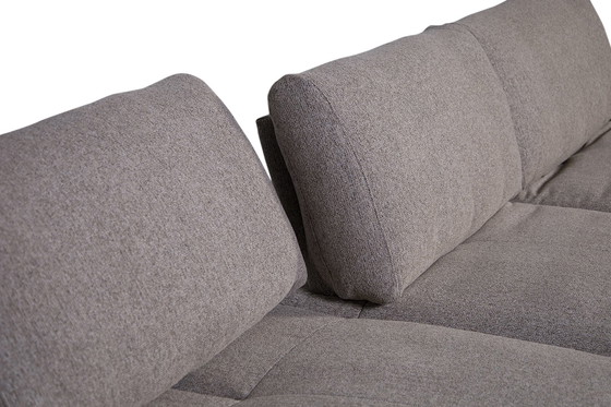 Canapé d'angle Vincenzo de W. Schillig en tissu Sesame sur pieds noirs, composé de : canapé avec accoudoir gauche (dimensions 194x100x85h) et fauteuil long droit (dimensions 137x164x95h)