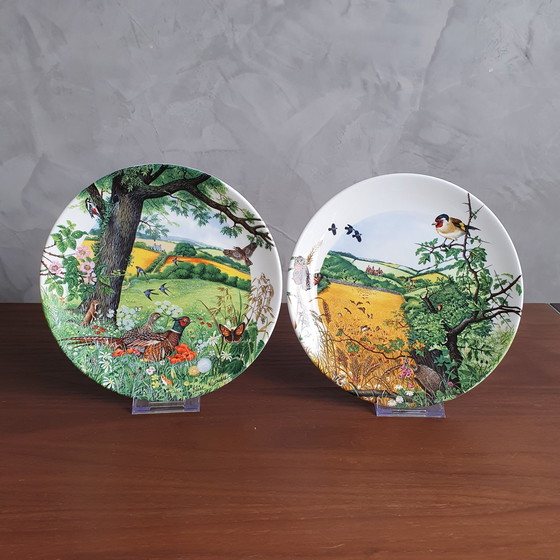 Vintage 1987 Wedgwood Bone China Decorative Collector's Plate - The village in the valley, Colin Newman's Country Panorama Bradex 26-W90-273. Et une assiette Meadows and Wheatfields, Wedgwood "Meadows and Wheatfields" Collectors Edition Plate by Colin Newman. Bradex 26-W90-27.1. En parfait état. Magnifique à suspendre. Objets de collection.