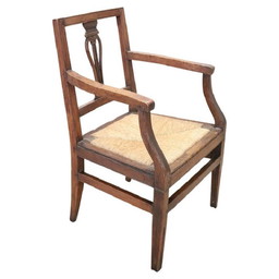 Fauteuil rustique ancien en bois avec assise en pailleFauteuil rustique ancien en bois avec assise en paille