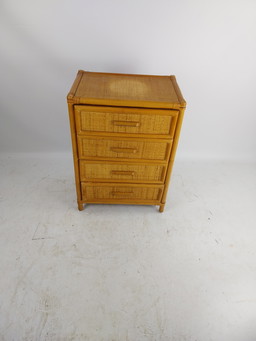 1 x commode en rotin 4 tiroirs. Italie, années 1970