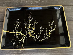 Grand Plateau Japonais En Bois Laqué Noir Et Or 49 / 34 Cm
