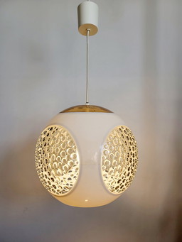 Lampe suspendue de l'ère spatiale, œil d'insecte, massif, blanc, Belgique, années 1970