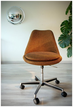 Chaise tulipe 70's, tissu lainé orangé et fonte d'aluminium