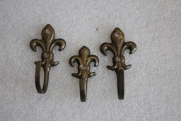 3 petits crochets décoratifs vintage, porte-serviettes, en laiton, motif héraldique de lys3 petits crochets décoratifs vintage, porte-serviettes, en laiton, motif héraldique de lys