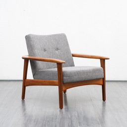 Fauteuil en teck des années 60, organique, rembourré et revêtu à neuf
