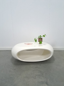 Table ronde ovale blanche de style Space Age avec compartiment ouvert