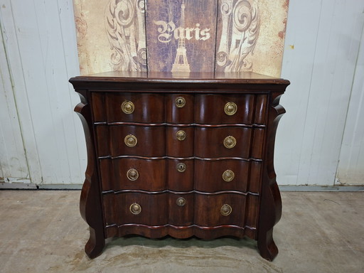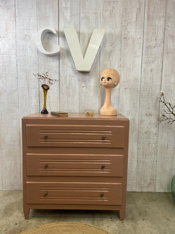 A vintage chest of drawers is a nostalgic piece of furniture often from an earlier period, such as the 1950s or 1960s. It usually has a unique and distinctive design, with details such as turned legs, decorative handles and a weathered patina, giving it a charming retro look.