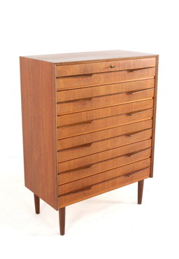 A chest of drawers is a practical furniture with multiple drawers, designed to store and organise items. It can be used in different rooms, such as the bedroom, living room or office, and comes in different styles and materials to suit different needs and interiors.