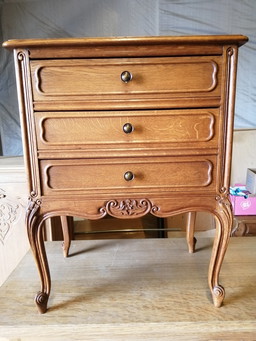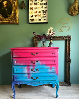 A vintage chest of drawers is a nostalgic piece of furniture often from an earlier period, such as the 1950s or 1960s. It usually has a unique and distinctive design, with details such as turned legs, decorative handles and a weathered patina, giving it a charming retro look.