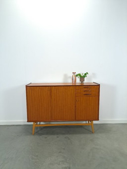 Teak cabinet with sloping legs and drawers from Sweden