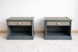 2x vintage rattan bedside tables in Maugrion style
