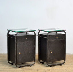 Set of iron and glass Bauhaus bedside tables, 1920s