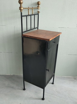 Vintage Scandinavian brown walnut night stand with white metal legs, 1960s