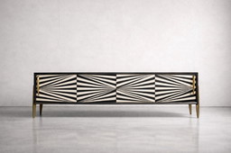 XL Vintage Black Postmodern Art Deco Sideboard with root wood