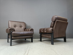 Pair Of Leather Armchairs Made In Denmark, 1960SPair Of Leather Armchairs Made In Denmark, 1960S