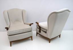 Pair of Mid-Century Modern Italian Velvet High Back Armchairs, 1950s
