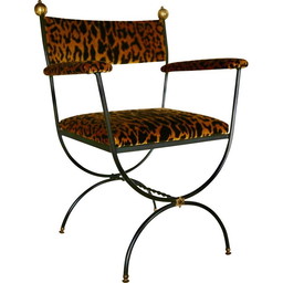 Vintage Curule Seat in Leopardo Silk Velvet 1960s