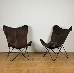 2x Butterfly Vintage Leather Chairs 1990s