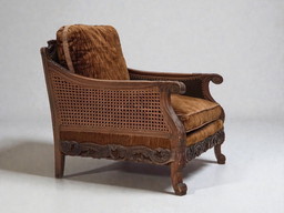 1930-35s, Danish armchair, furniture velour, furniture mesh, carved ash wood.1930-35s, Danish armchair, furniture velour, furniture mesh, carved ash wood.