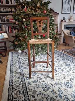 2x vintage wooden bar stools with rush seat