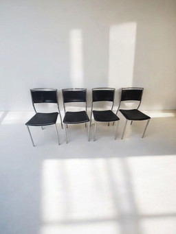 Great set of 6 black leather '905 Armchairs' by Vico Magistretti for Cassina