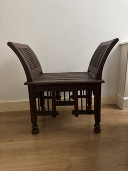 Set van twee vintage brutalist design beukenhout barkrukken