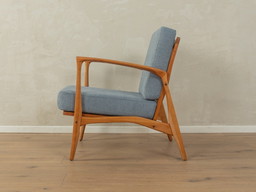 1960s, Danish armchair, cherry-red furniture velour, beech wood legs, reupholstered.