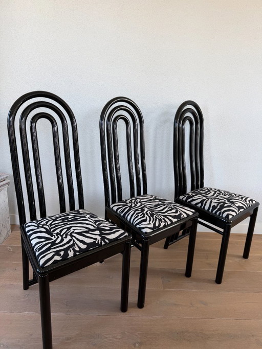 Set of 3 Postmodern Dining Chairs – Memphis Style – Zebra PrintSet of 3 Postmodern Dining Chairs – Memphis Style – Zebra Print