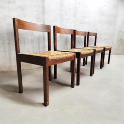 Vintage oak dining chairs with wicker seats, DUTCH DESIGN by Gerard Geytenbeek, 1960s