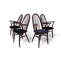 Windsor slatted chairs, 4 pieces, vintage dining room chairs, wood
