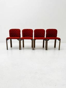 Set of 4 Red Upholstered Mid-Century Chairs by Dietiker Stein Am Rhein