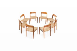 Teak Papercord Dining Chairs by Niels O. Møller for J.L. Møllers, 1960s, Set of 8