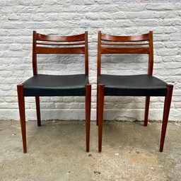 2x dining chair teak - black leatherette - mid-century2x dining chair teak - black leatherette - mid-century