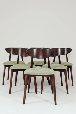 Modern Set of 6 Dining Chairs, Sage Farbic and Dark walnut beech wood