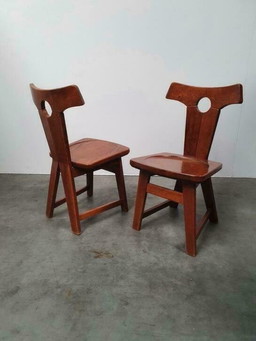 Vintage BRUTALIST oak handmade farmhouse dining chairs, 1930s Netherlands