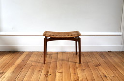 Vintage Scandinavian teak and wicker stool/footrest, 1960s OmannVintage Scandinavian teak and wicker stool/footrest, 1960s Omann