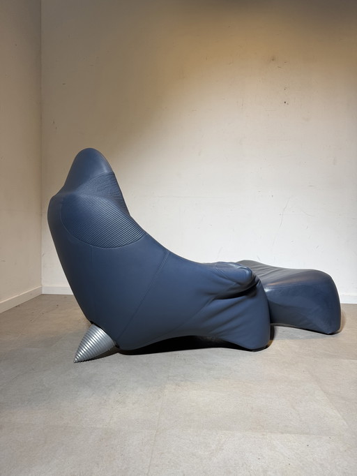 Marc Sadler “Hal” Lounge Chair + Ottoman for Cassina (1996) – Blue Leather