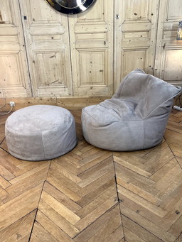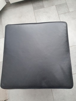 Original Vintage Scandinavian Pouf - Black Faux Leather & Metal Frame